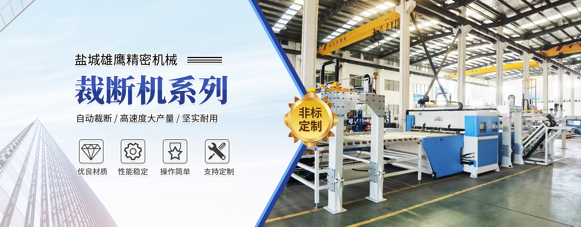 - 國內專業(yè)生產各種液壓裁斷機(下料機)、模切機、冷壓機、切片機、多片鋸、壓花機等精密機械和通用機械系列產品的規(guī)模企業(yè)。